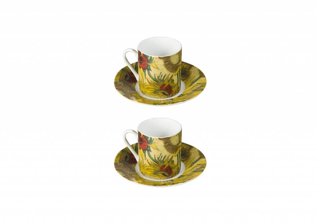 Set van twee espresso kopjes met Van Gogh's Zonnebloemen print