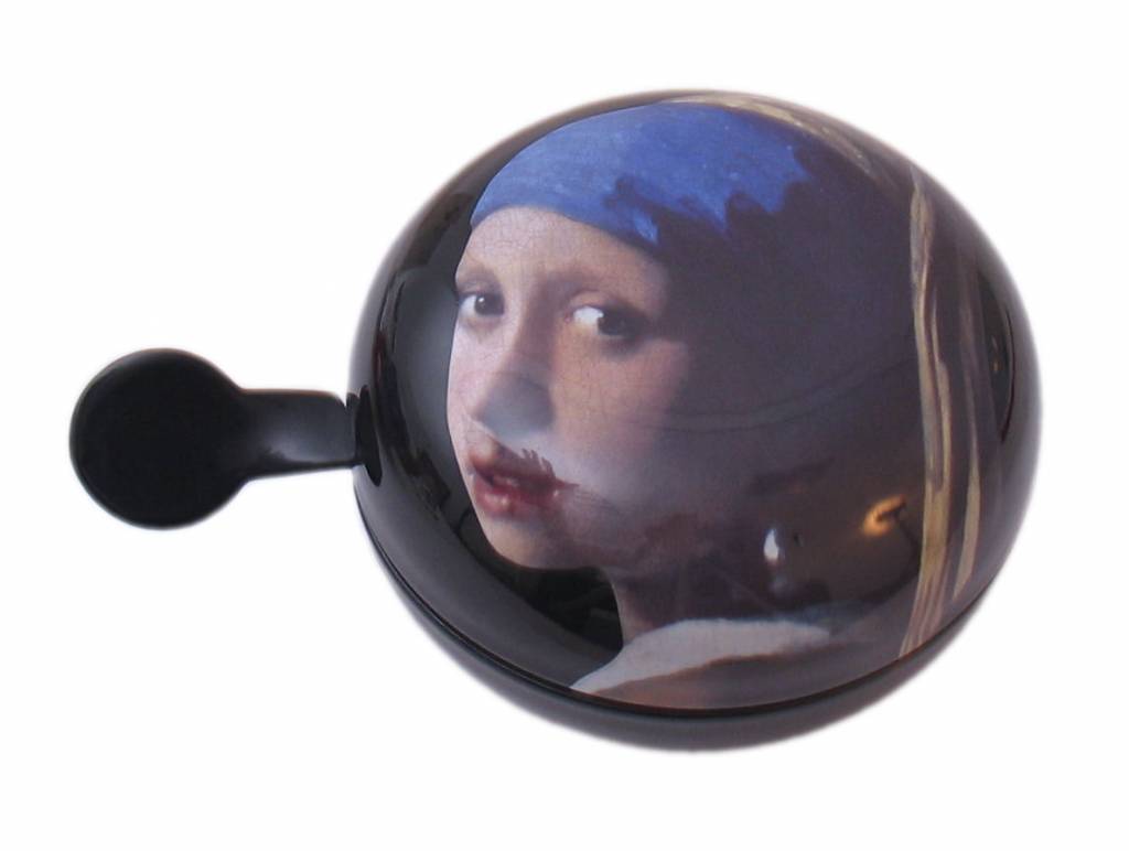 Mooie grote fietsbel, klaar met schroefjes om geplaatst te worden, verpakt in doorzichtig doosje met beschrijving.