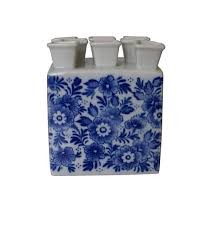 Tulpenvaas, Delftsblauw, vierkant. Hoogte: 17 cm
